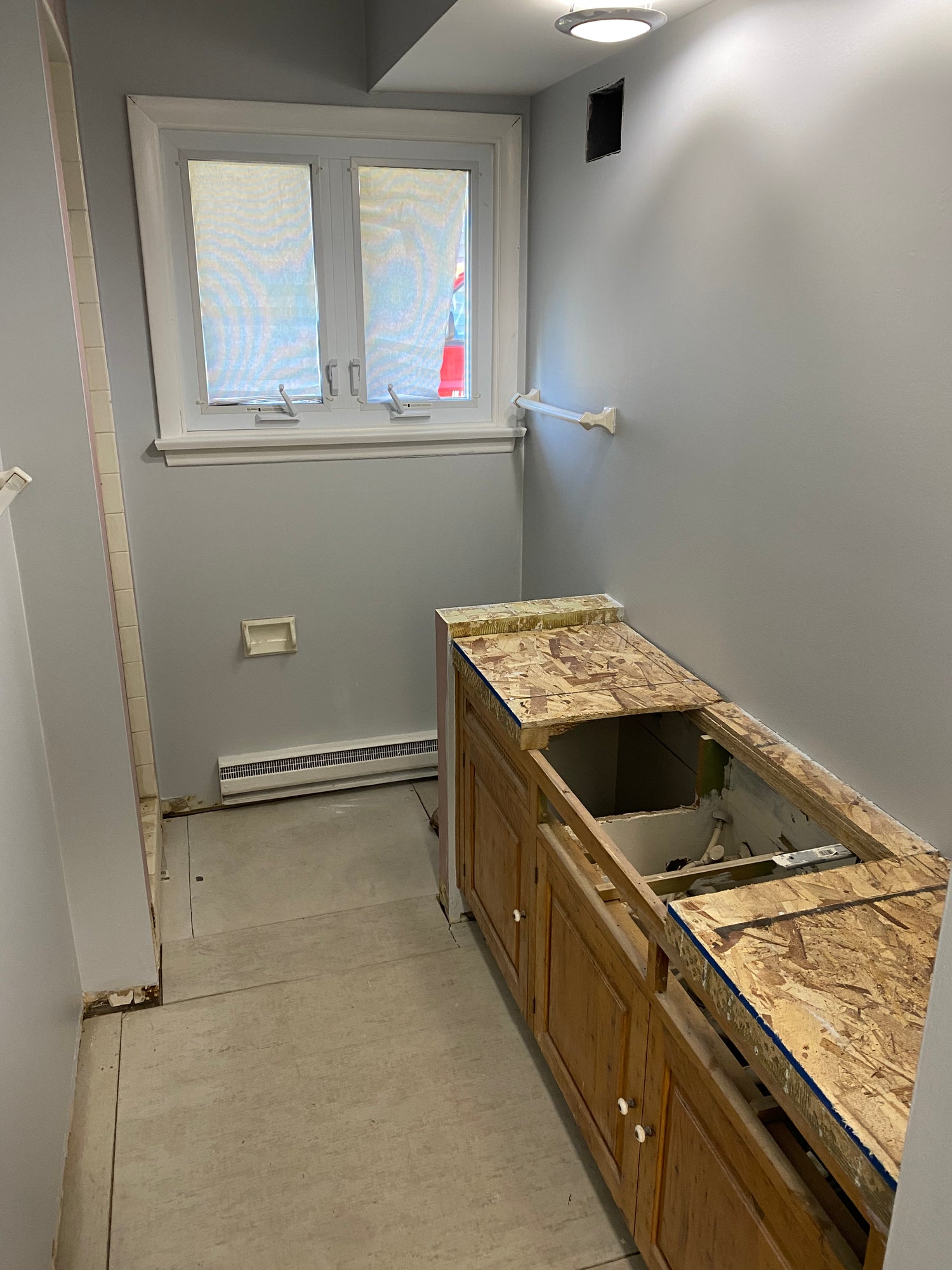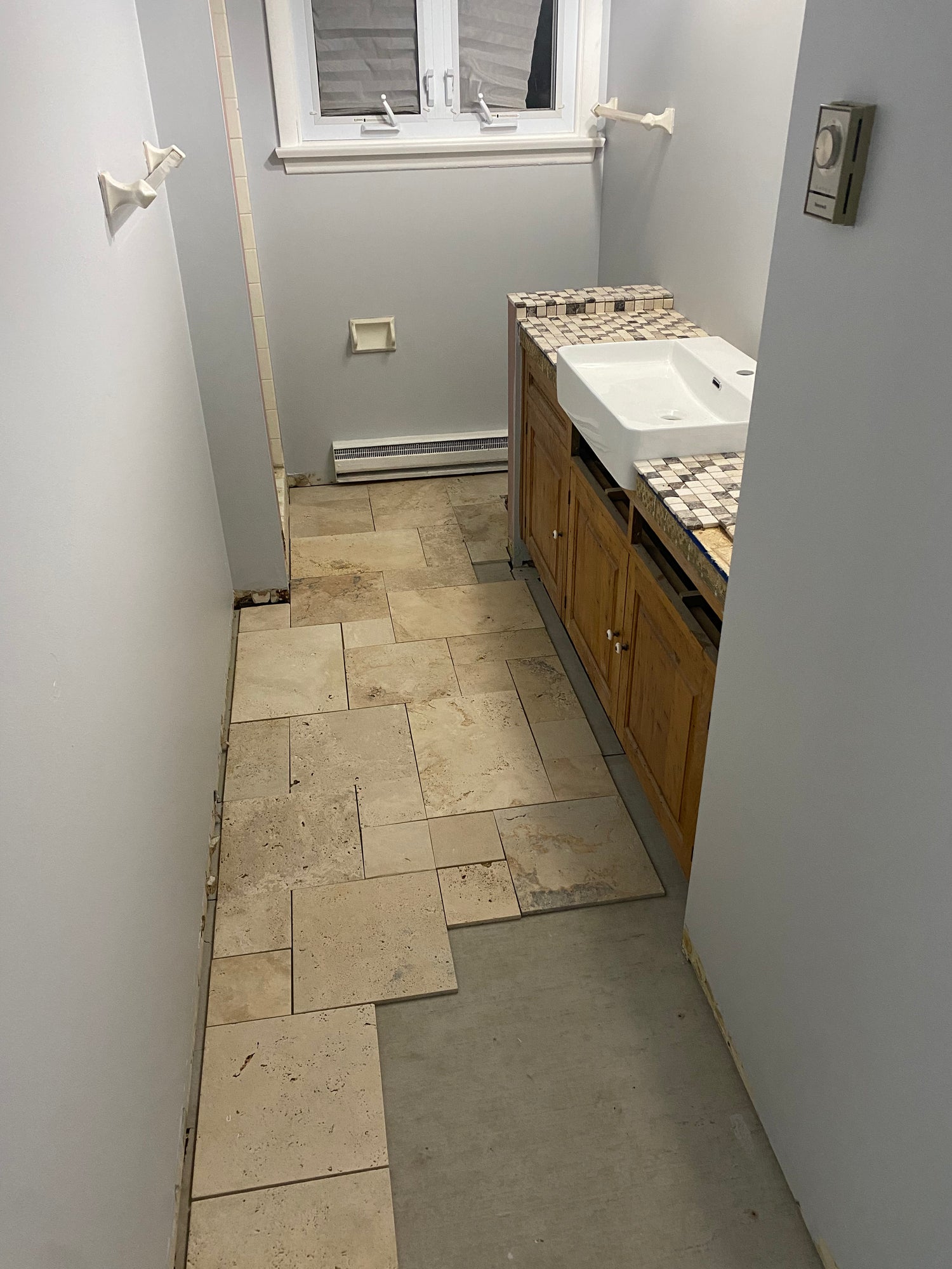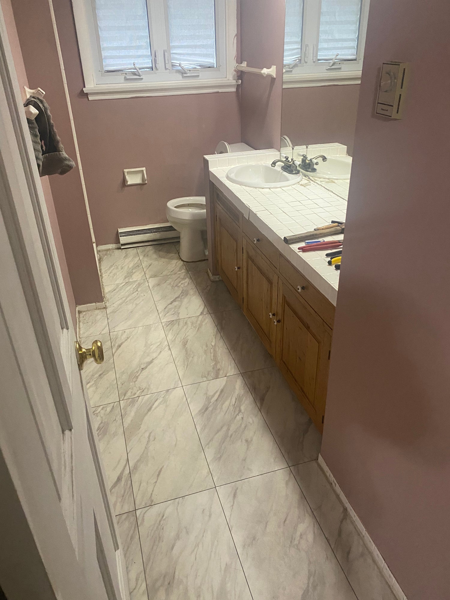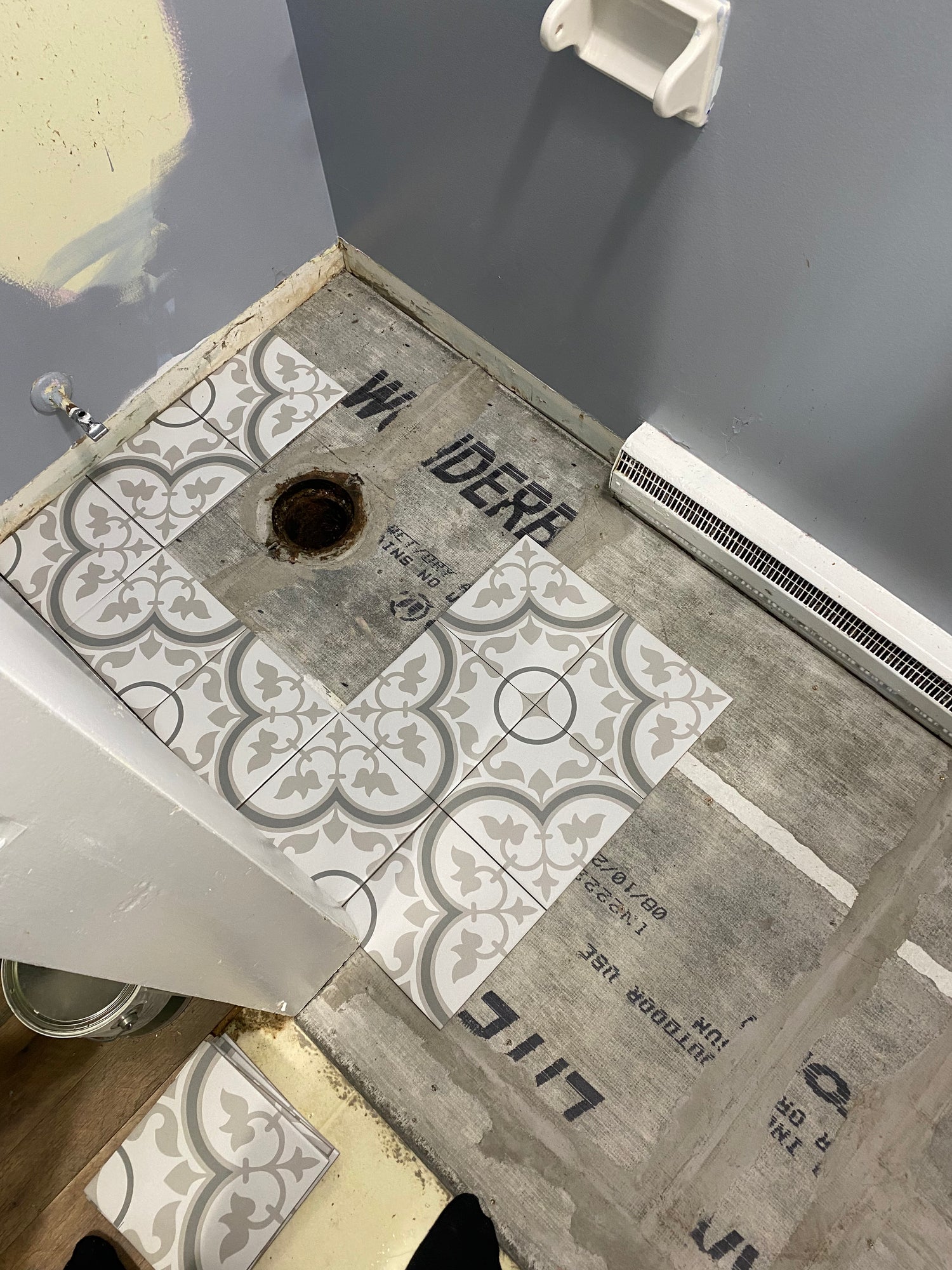 Bath and Laundry Room Remodel - installing tiles in bathroom