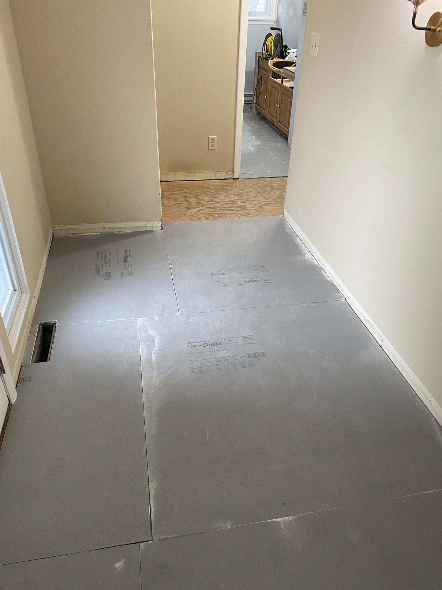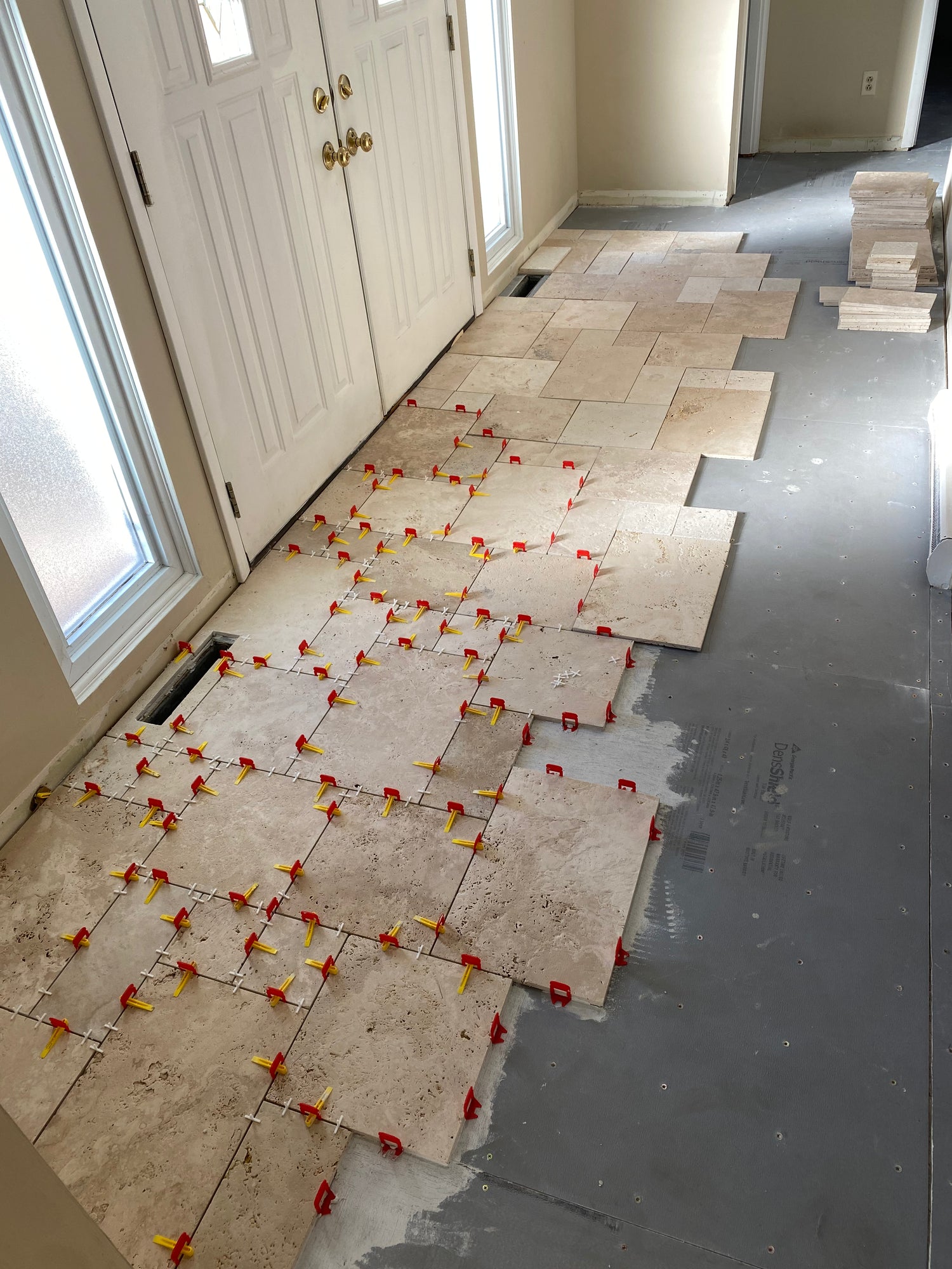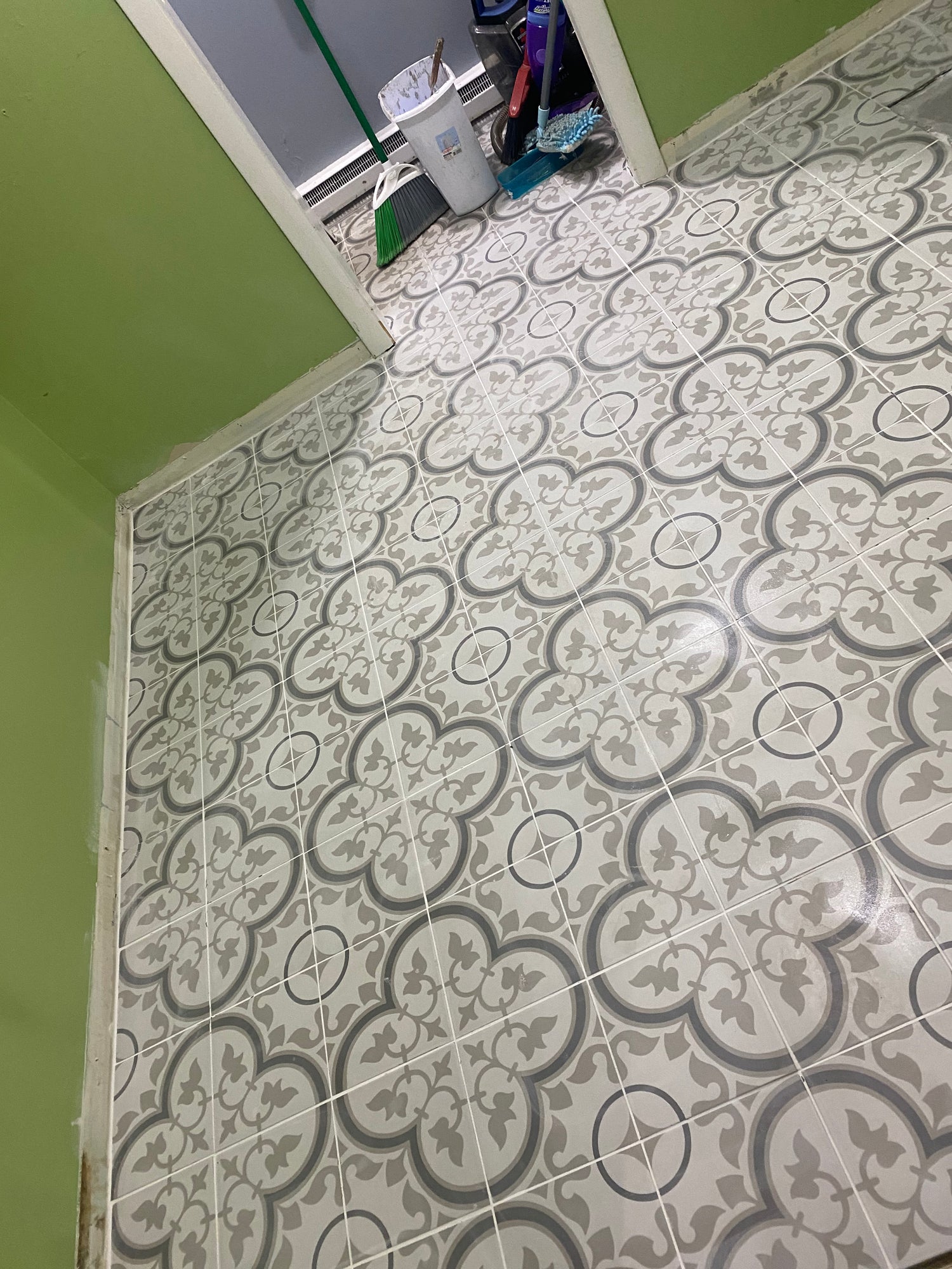 Bath and Laundry Room Remodel - installing the tiles in the laundry room